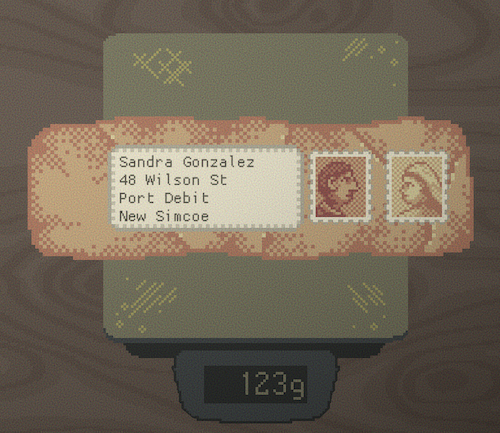 I absolutely LOVE the graphics, they're lovely to look at and the stamps themselves are so pretty, I love the little lake goose one <3 The way parcels shake when you rotate them and how neatly they slot into storage, and the design of the stamp remover and how it makes the stamp flash while steamed is super intuitive!! It feels incredibly well polished and the UI is very smooth to use, the keybinds are especially useful, I use the tab one a lot!!